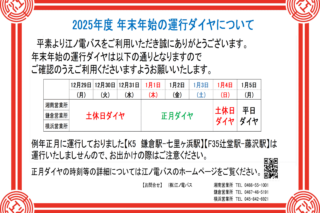 2025年12月30日(火)~2026年1月4日(日)まで、土休日ダイヤでの運転となります。