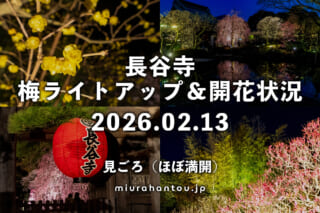 鎌倉・長谷寺 梅の開花状況<ほぼ満開で見ごろ>※梅ライトアップは2/15(日)まで