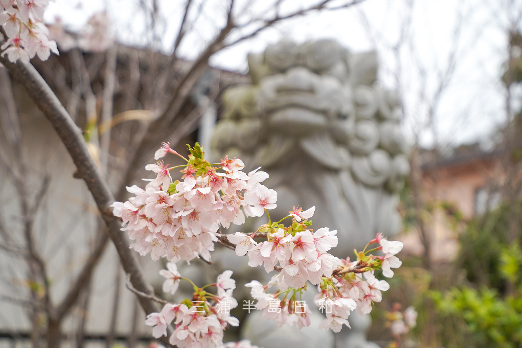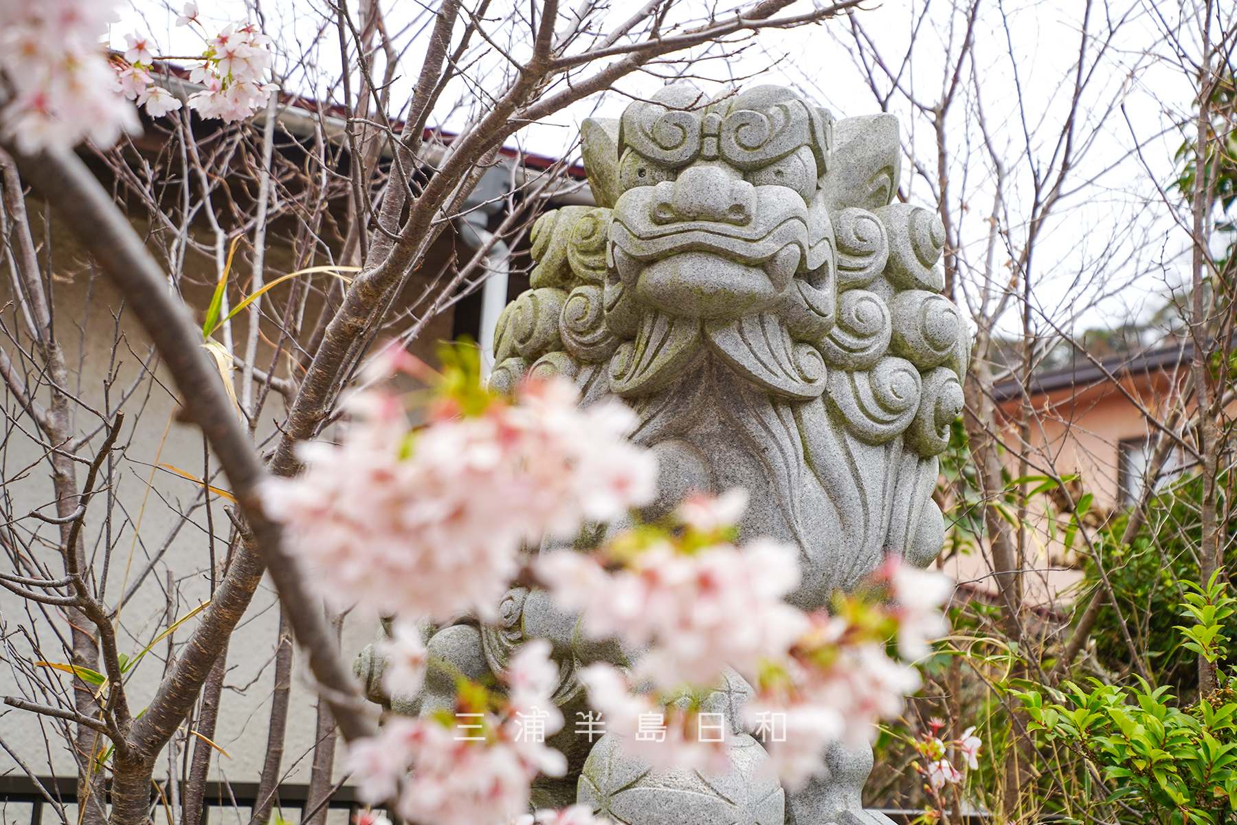 新旧2対の狛犬が迎えてくれる新旧2種の五所神社桜並木