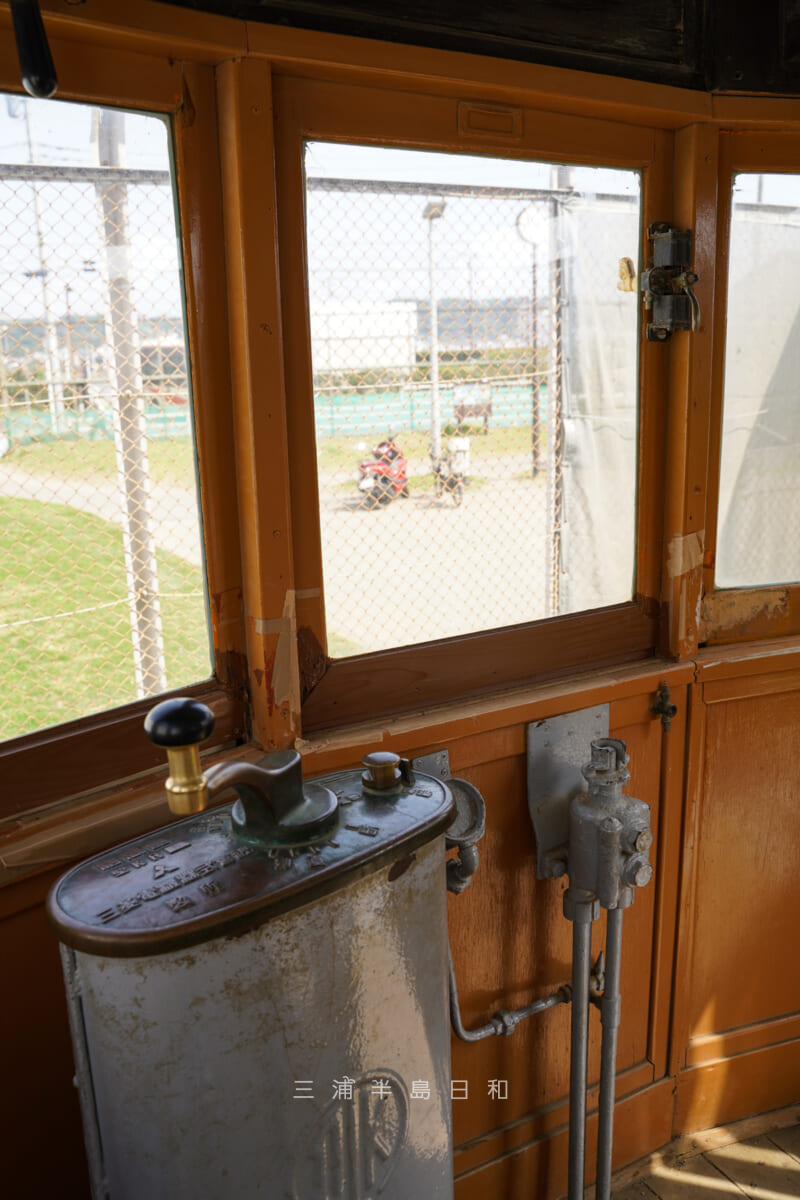 鎌倉海浜公園由比ガ浜地区・江ノ電106形107号車の運転台(撮影日:2019.04.21)